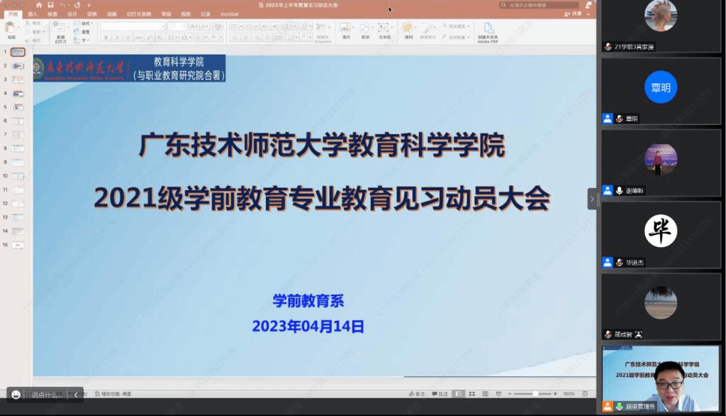 为落实人才培养方案要求,引导学生明确教育见习的目的与意义,进一步推进教学计划工作顺利开展,4月14日中午,bevictor伟德官网2021级学前教育专业师范生教育见习动员会在线上成功召开。学院谢德新副院长、全体教育见习指导老师、2021级学前教育专业学生参加了会议,会议由学前教育系主任黄茂勇主持。
