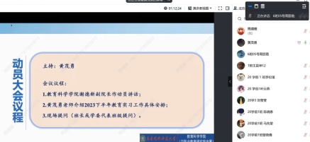 2023年7月3日星期一下午,学前教育系举行2020级师范生教育实习动员大会。学院副院长谢德新、系主任黄茂勇、专业负责人徐韵莹、学前教育系全体专任教师及2020级全体学生参加了会议。