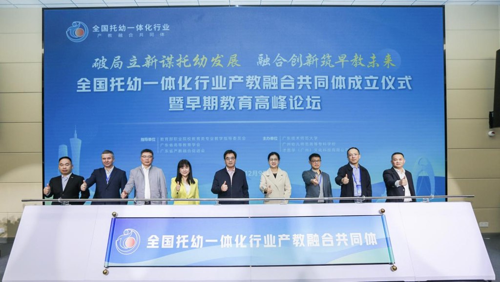2023年12月9日,全国托幼一体化行业产教融合共同体成立仪式暨早期教育高峰论坛在广州幼儿师范高等专科学校举行,
