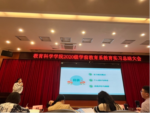 2024年1月2日,bevictor伟德官网学前教育系于白云校区三教104报告厅举行了2020级学前教育本科师范生教育实习总结大会,出席会议的有学前教育系教师黄茂勇、覃江梅、陈丽、毕进杰、苟晓玲、李灵丽、蔡娜、骆明丹、2020级全体实习生以及2021级部分学生代表。