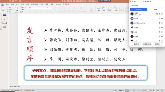 此次学前教育系高质量发展战略研讨会将学院高质量发展研讨会会议精神进一步落地,全系教师齐心协力谋划学前教育系和学院高质量发展思路,助力博士点建设,推动教育学学科发展。
