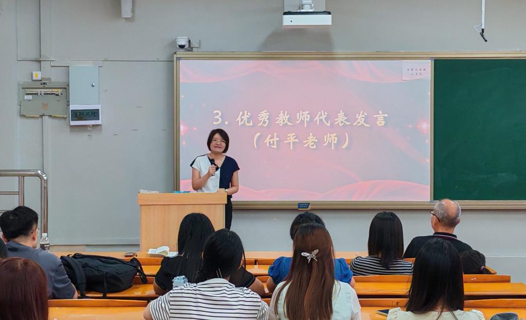 付平副教授作为优秀教师代表在发言中表示,导师们将认真履行职责,悉心指导同学们的学习和研究,并提出“三个一”计划。希望同学们树立远大的学术目标,培养严谨的治学态度,勇于探索创新,积极与导师和同学交流合作,在学术道路上不断取得进步。