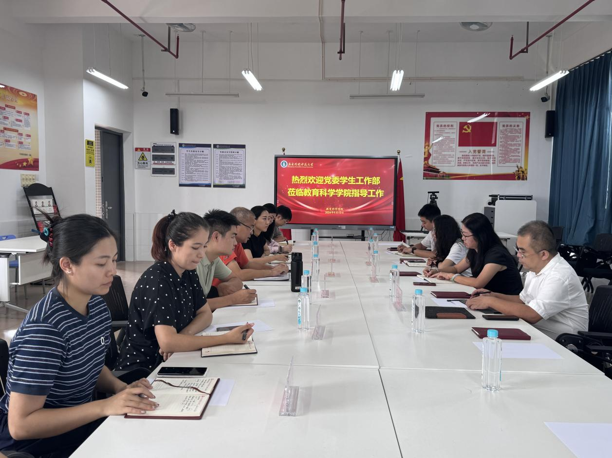 9月13日上午,学校党委学生工作部部长苏敏,思想政治教育科科长赵璐,心理健康教育与咨询中心主任任增辉,辅导员刘玮等一行到访我院,就学院学生工作情况开展调研与指导。学院党委书记张旭日以及全体辅导员参加了会议。