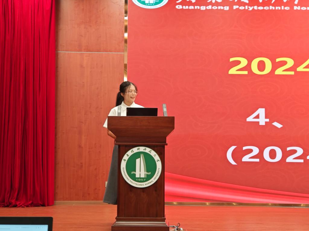 典礼现场,新生代表吕玉绮同学分享自己的学习经历,表达了对恩师的感激之情。吕玉绮同学勉励同学们要在广师大的知识土地上播下期望的种子,在书写人生绚丽篇章的路途中结识更多的挚友,在为教育事业做贡献的道路上要拥有“长风破浪会有时,直挂云帆济沧海”的勇气和信心直面挑战,在教育事业上肩负起教育的神圣使命。