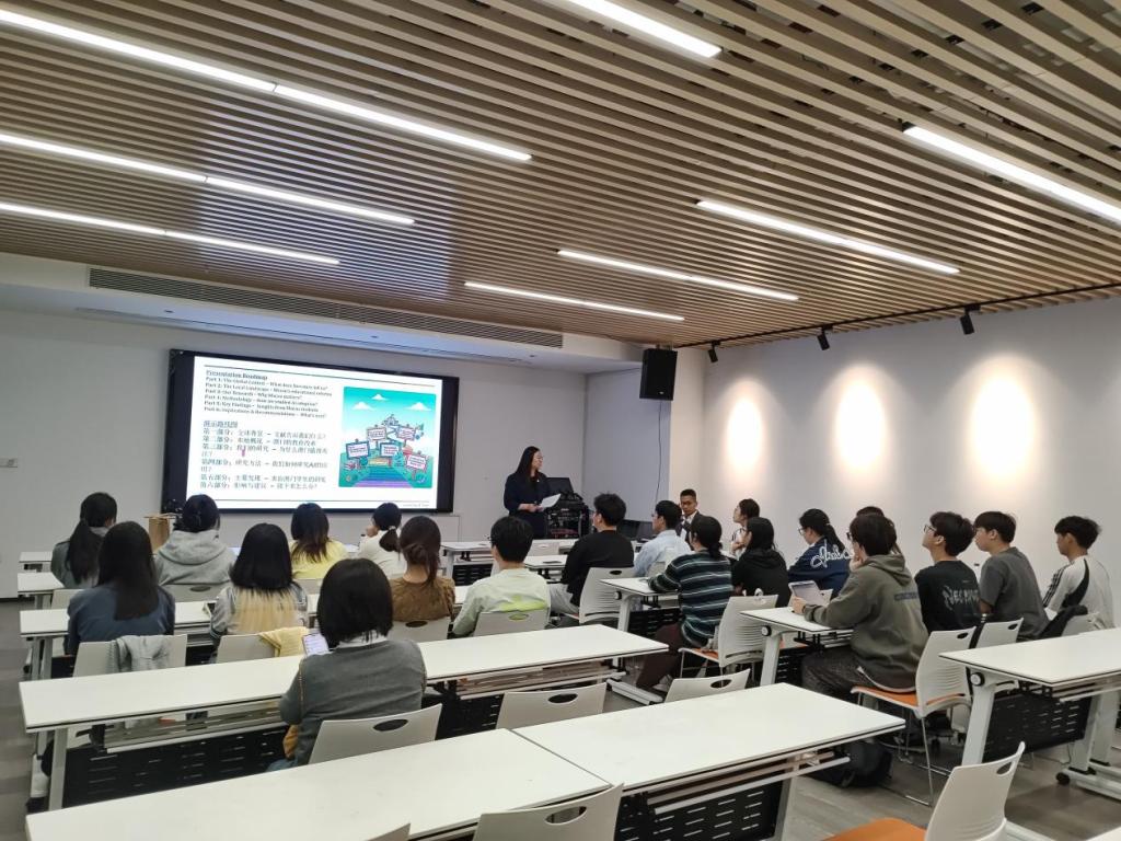 讲座开始前,谢德新介绍了此次澳门圣若瑟大学到访的活动背景、主要议题和未来前景,以及讲座嘉宾郑蕴雯教授的基本情况和研究领域。随后,郑蕴雯从人工智能驱动的数字学习变革的全球背景、澳门教育改革、为什么关注澳门、如何研究AI的运用、主要发现以及教育影响与建议六个方面进行讲座,为我院师生较为全面地呈现人工智能时代澳门高等教育中AI运用的经验。接着,李志恒向我院师生介绍了澳门圣若瑟大学的办学历史和招生情况,重点介绍了教育学硕士和博士课程开设的相关情况。最后,同学们就讲座内容的相关问题和该校的研究生申请问题进行了交流和讨论。