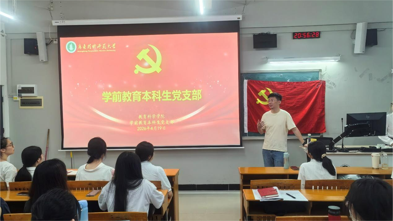 为深入学习贯彻习近平新时代中国特色社会主义思想和党的二十大精神,赓续红色血脉、坚定理想信念,2026年4月19日,学前教育本科生党支部于三教109教室组织开展了“观影铸魂,砥砺前行”主题党日活动。本次活动由支部书记主持,支部全体党员及入党积极分子参加。