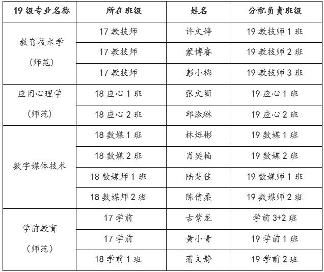 经过学生自愿报名、简历筛选、公开面试等环节,现拟确定教育科学与技术学院2019级本科新生助班名单,公布如下:
