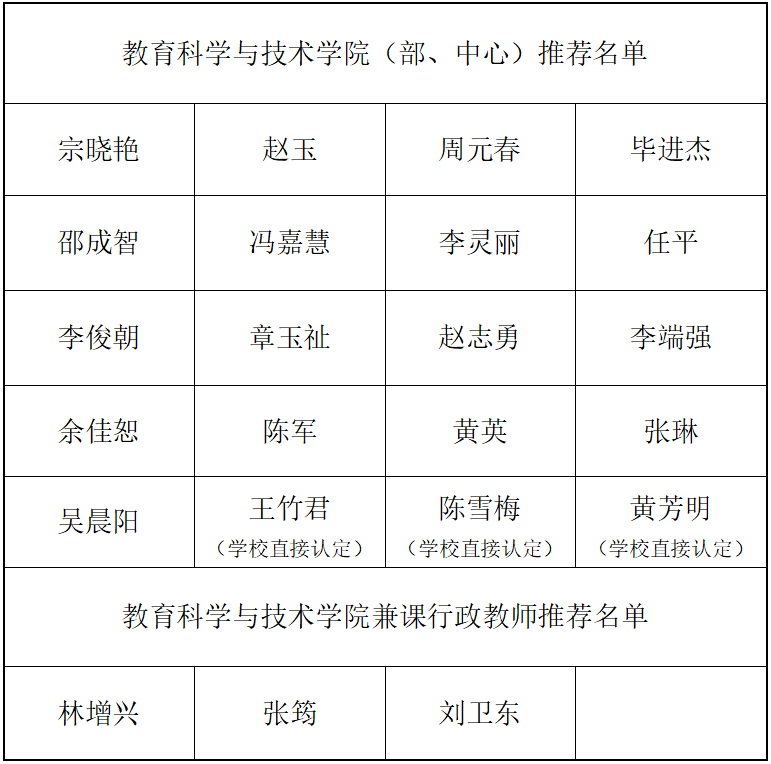 根据《关于评选我校2020-2021学年度课堂教学质量优秀教师的通知》,结合《教育科学与技术学院2020-2021学年度课堂教学质量优秀评选办法》,由各系推选,经过学院本科教学指导委员会审阅,学院党政联席会同意,现对获得推荐人员的名单进行公示。