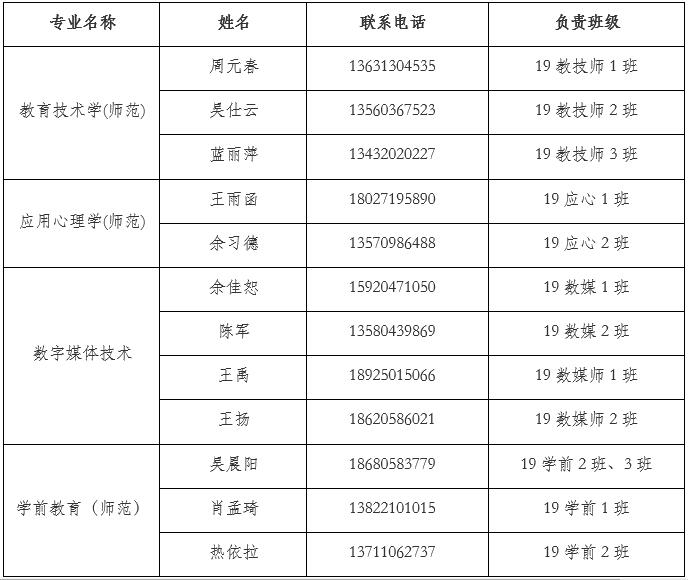 经过老师自愿报名、各系部推荐、学院领导班子讨论决定,现拟确定教育科学与技术学院2019级本科新生班主任名单,公布如下: