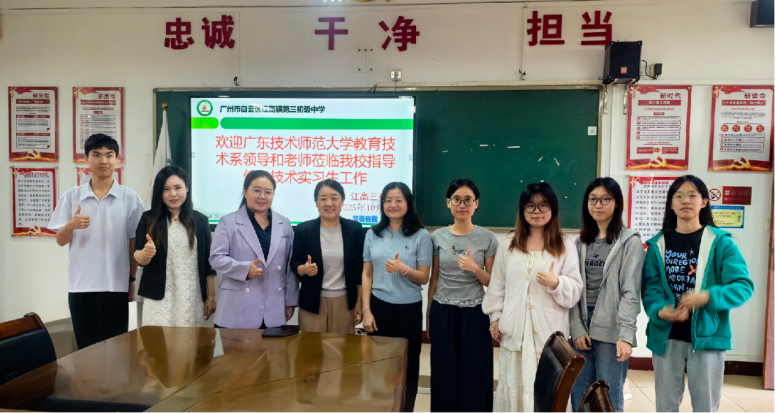 此次实习中期检查进一步加强了我系与江高三中的交流与合作,全面了解了实习生的成长状况与实际需求。双方围绕实习内容优化、指导方式改进、校地协同育人机制完善等议题进行了深入探讨,为后续提升实习指导与服务质量、推动教育技术人才培养模式创新凝聚了共识,也为深化高校与中学的合作奠定了更加坚实的基础。