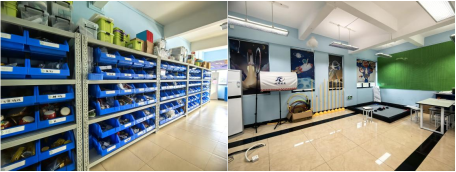 走访期间,恰逢桂城外国语学校校园运动会隆重举办,校园内活力四射的氛围与学校重视实践教育的理念高度契合。在桂城外国语学校刘春华副校长、信息科技科组组长黄忠健老师的带领下,重点参观了学校的人工智能实验室。实验室内部配备了涵盖智能编程教具、机器人实训套装等教学设备,完全满足从基础编程教学到高阶机器人实训的全流程教学需求。
