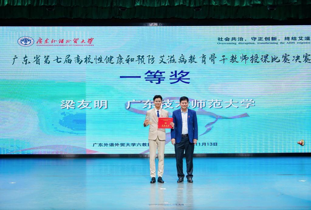 2025年11月13日,广东省第七届高校性健康和预防艾滋病教育骨干教师授课比赛决赛在广东外语外贸大学落下帷幕。bevictor伟德官网教育技术系青年教师梁友明博士荣获一等奖,bevictor伟德官网获得优秀组织奖。bevictor伟德官网谢德新副院长莅临现场,学前教育系及教育技术系的部分同学现场观摩比赛。