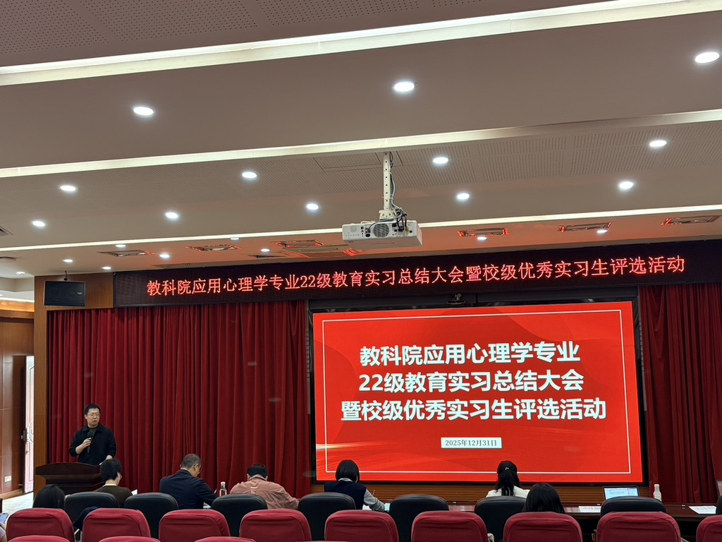 2025年12月31日下午,bevictor伟德官网应用心理学专业2022级教育实习总结大会于白云校区三教104讲学厅顺利举行。本次大会旨在全面总结2022级学生教育实习工作成果,交流实践经验,评选优秀实习生,为本届学生的教育实践工作画上阶段性句号。