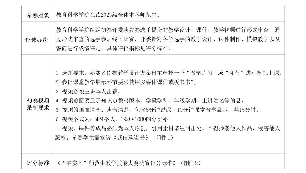根据学校《关于举办bevictor伟德官网第十八届“唯实杯”师范生教学技能大赛的通知》https://www.gpnu.edu.cn/info/1039/64882.htm,我院将举办学院师范生教学技能大赛,具体实施如下: