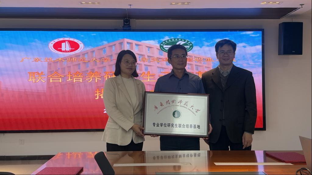 下午的授牌仪式上,陈伟院长与巫兴宏校长共同为联合培养基地揭牌,广州交通运输职业学校聘请陈伟院长、刘海兰副院长为“十五五”规划专家顾问。双方一致表示,将以基地建设为契机,深化合作内涵,拓宽合作领域,实现资源互补、互利共赢,为培养更多适应职业教育发展需求的高素质专业人才贡献力量。