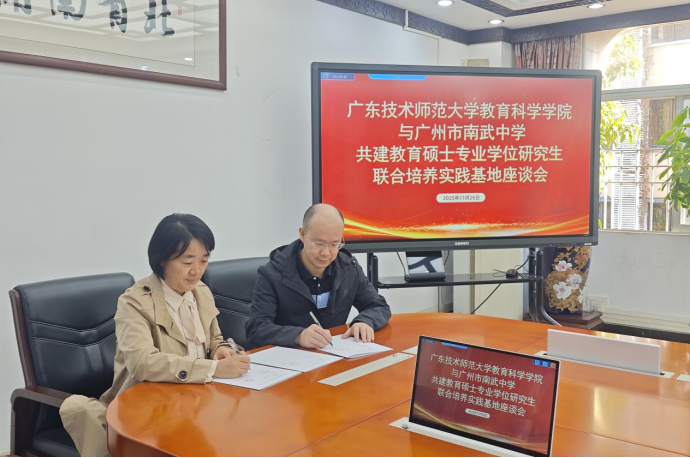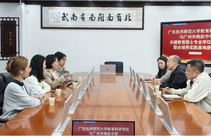 为深化校际教育教学交流,助力教育硕士将理论知识与教育实践深度融合,2025年11月24日,赵玉教授带领24级现代教育技术研究生前往广州市南武中学开启为期一个月的教育见习活动。南武中学副校长黄赛飞、信息科技科长陈韶光、广东省科技教育名师工作室主持人许月媚等领导老师出席座谈会,并举行了研究生联合培养实践基地签约仪式,为此次见习活动拉开了圆满的序幕。